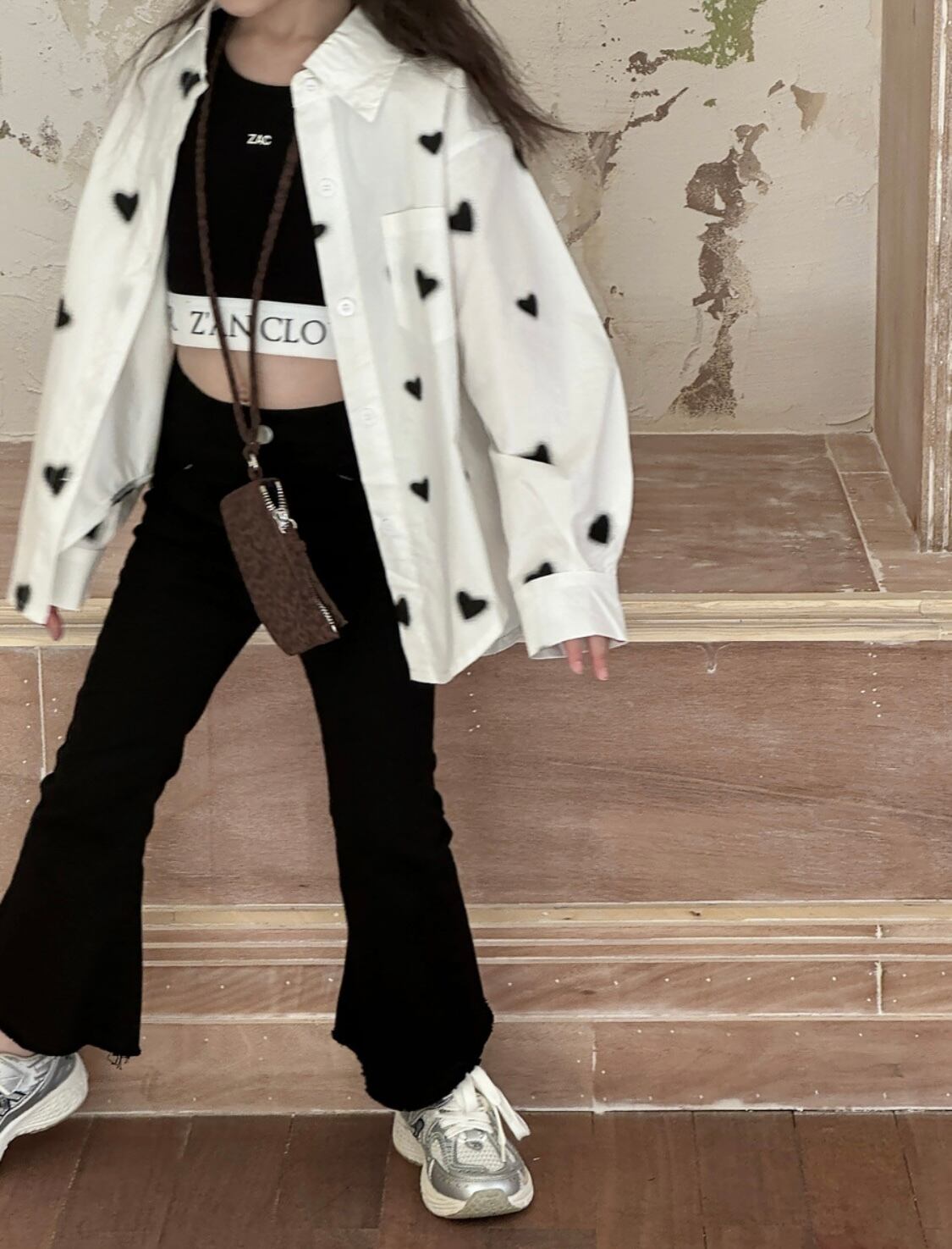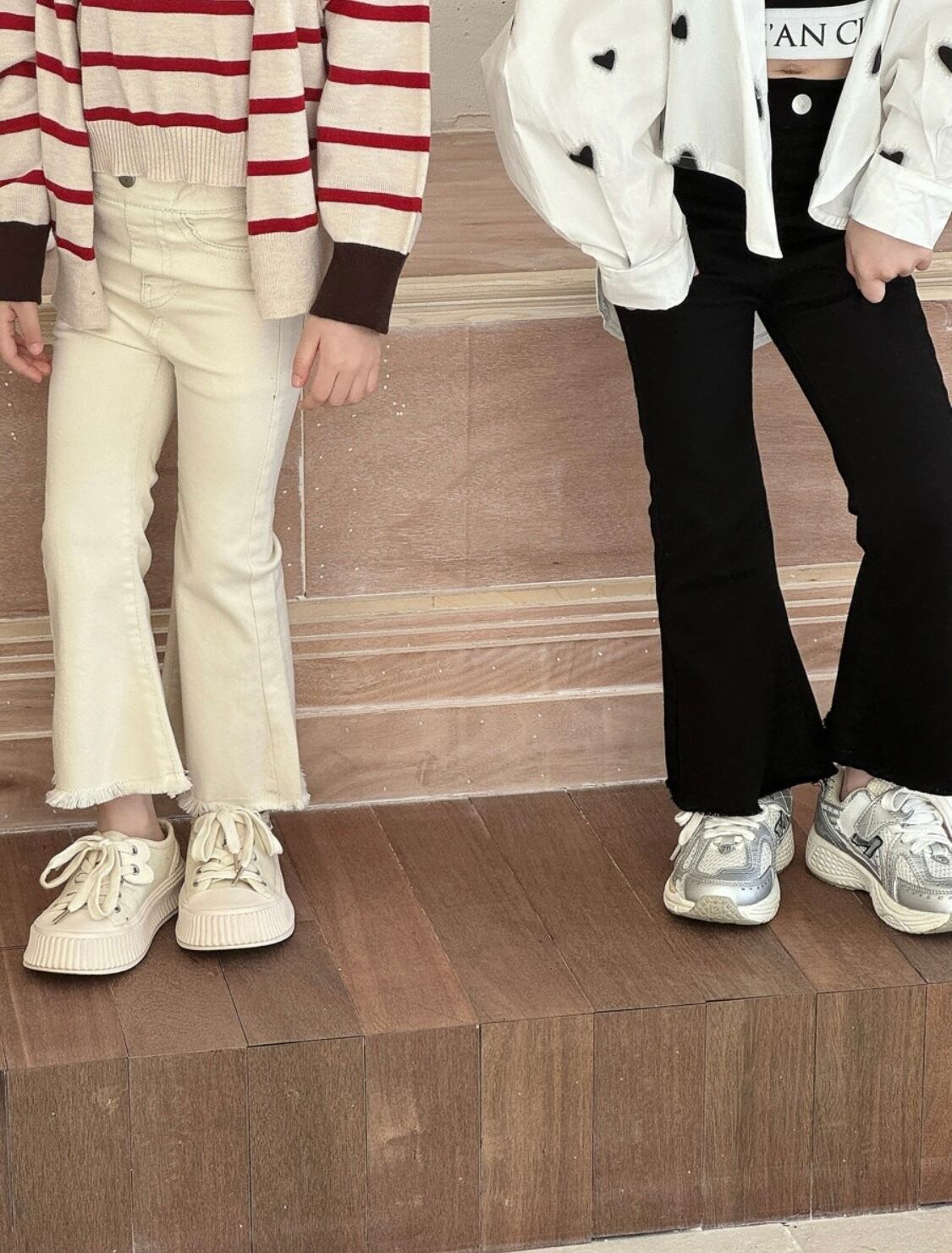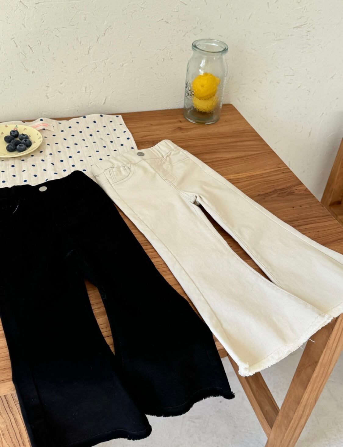 自然な風合いとシンプルなデザインが魅力のキッズフレアパンツ。