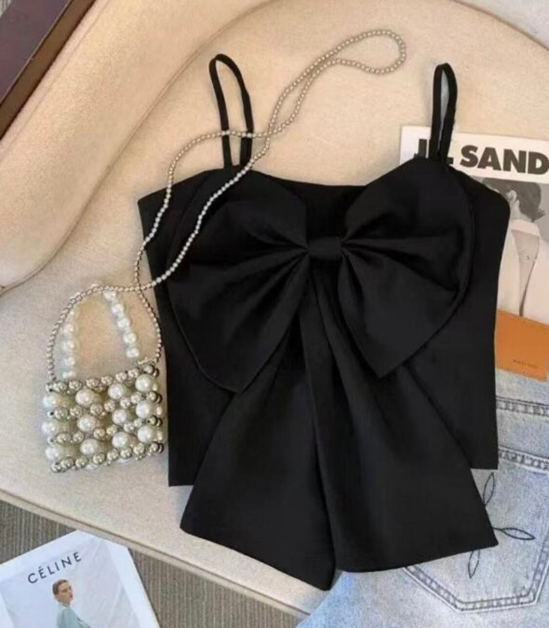 大きなリボンが目を引く、女の子らしさ満点のキャミソールトップス。