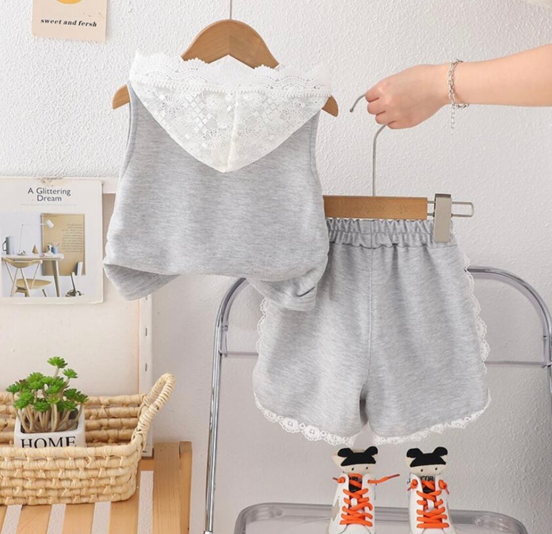レース襟付き ノースリーブ&ショートパンツセットアップ【キッズ】